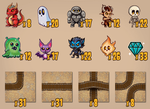 The number of times each type of creature, each type of tile and diamonds appear in the deck: